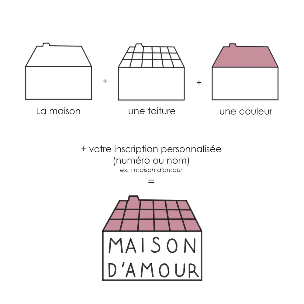 À partir d’une forme de maison unique, vous composez votre plaque en choisissant les éléments qui vous ressemblent.
